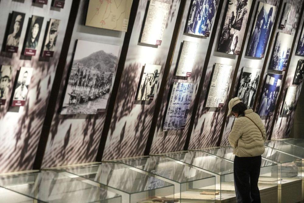参观者在辽沈战役纪念馆内参观(4月1日摄)。辽沈战役纪念馆收藏了穆青同志采写的《东北抗日联军斗争史略》。新华社记者潘昱龙摄