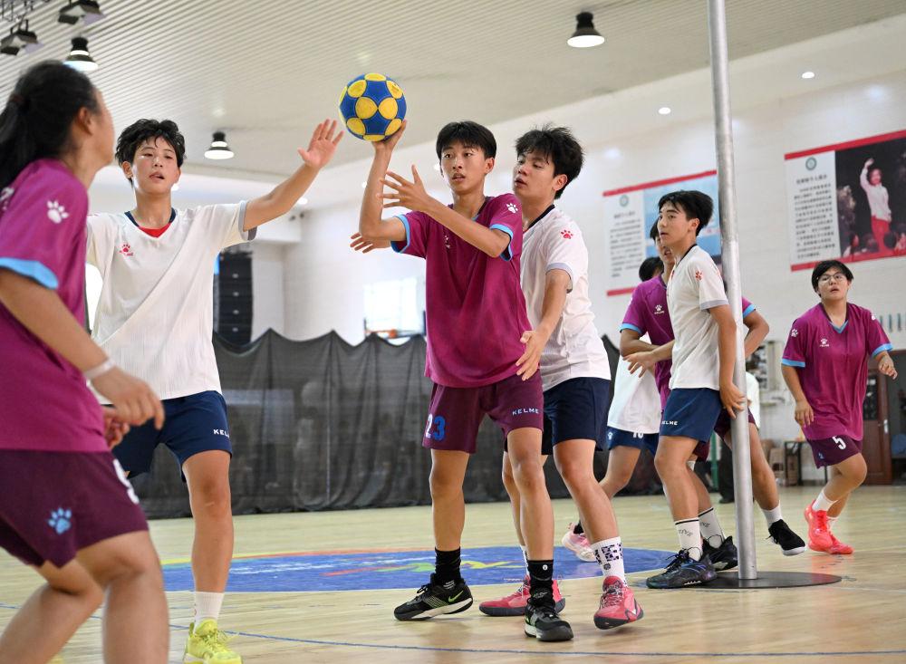 郑州市第七十六中学荷球队球员在练习赛中。新华社记者 李嘉南 摄