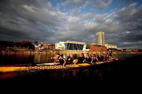 2023年6月20日,一支英国龙舟队在英国利物浦训练。