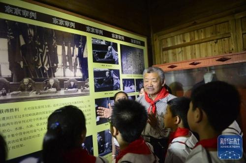 2015年8月12日,梅小璈在梅汝璈故居为前来参观的学生介绍东京审判相关故事。新华社记者 周密 摄
