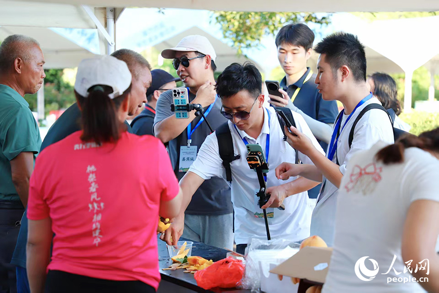 主播在电商集市里推介特色农产品。人民网 黄东仪摄