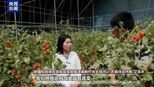 新疆和田策勒县策勒镇津南新村党支部书记古丽拜合热姆·艾克木:我们种植结构改变成有蔬菜、林果、花卉、中药材的多元化种植模式。目前,村民人均收入已经超过2万元,群众的生活条件已经越来越好了。