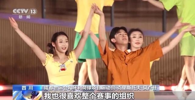 成都世运会匈牙利荷球项目运动员 克里斯托夫·贝卢什:尤其是最后那个节目,美轮美奂、气氛热烈,还有挥舞道具和舞蹈的部分,非常有感染力,让人很感动。我也很喜欢整个赛事的组织,志愿者们都很热情、很可爱。