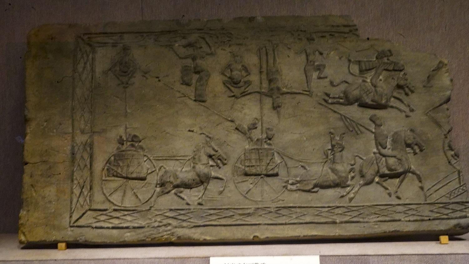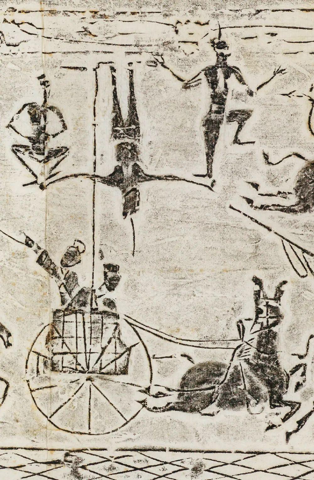 斜索戏车画像砖以线面结合的手法分层叙事