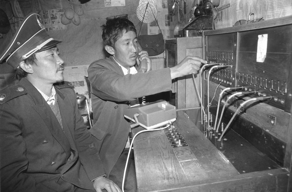 1994年4月16日,西藏江孜县年堆乡工作人员正在接电话。新华社记者 土登 摄