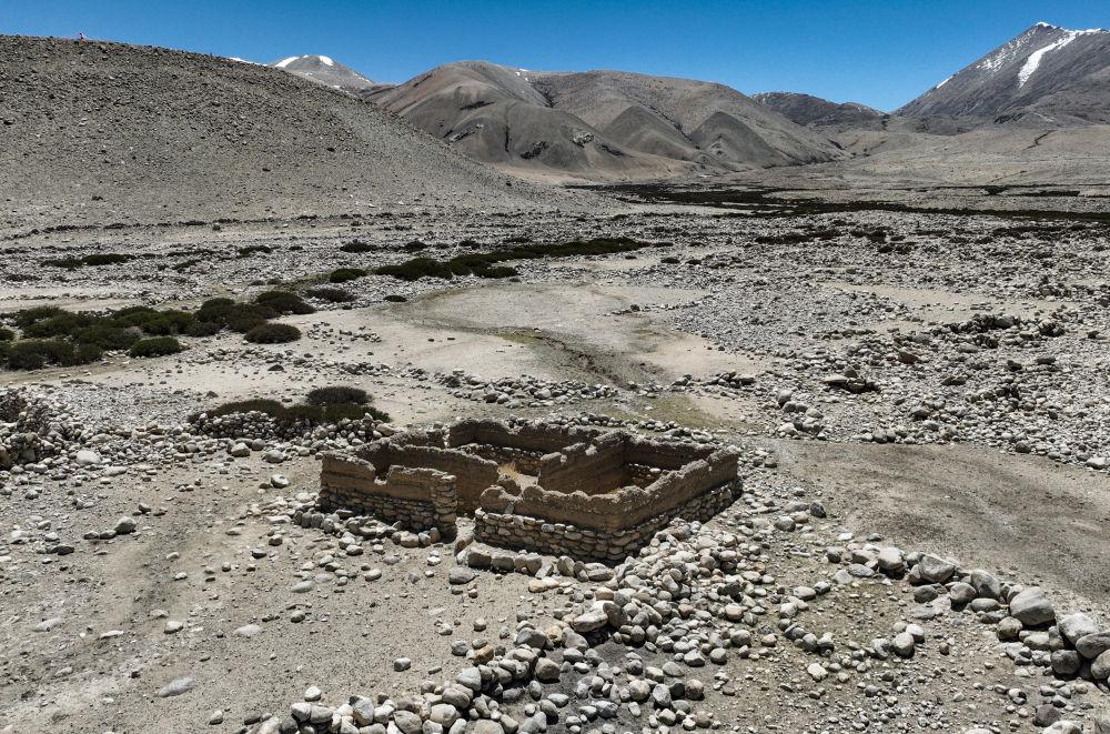 2023年5月28日拍摄的西藏阿里地区噶尔县扎西岗乡典角村在20世纪60年代修建的“一代房”的残存。新华社记者 晋美多吉 摄。