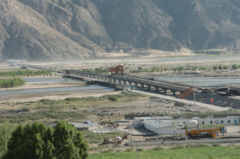 这是2004年6月7日拍摄的建设中的跨雅鲁藏布江特大桥。新华社记者 土登 摄