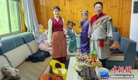 黄小芳一家人共同庆祝藏族传统节日。受访者供图
