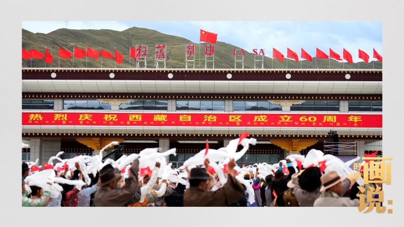 中共中央总书记、国家主席、中央军委主席习近平率中央代表团20日中午乘专机抵达拉萨,出席西藏自治区成立60周年庆祝活动。在机场和拉萨市区,习近平总书记受到西藏各族群众的热烈欢迎。