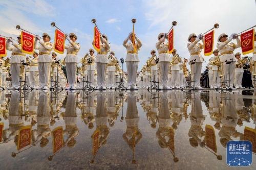 ↑ 中国人民解放军联合军乐团在进行训练(8月12日摄)。新华社记者 张铖 摄