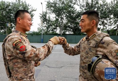 ↑ 参阅队员在进行训练(8月12日摄)。新华社记者 殷刚 摄