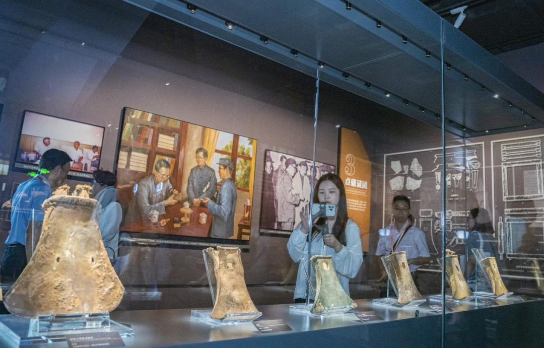 一件件青铜器、采矿工具,仿佛将众人带回了那个青铜文明辉煌的时代,总编辑们被博物馆内陈列的丰富文物深深吸引。从用于采矿的青铜斧、青铜凿,到用于运输矿石的“竹编矿车”,再到用于冶炼的陶质炉具,每一件文物都蕴含着丰富的历史信息。