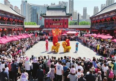 古文化街宫前广场民俗花会表演。记者 胡凌云 摄