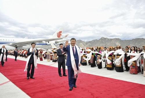 习近平作为中共中央总书记、国家主席、中央军委主席率中央代表团到西藏出席西藏自治区成立庆祝活动,在党和国家历史上是第一次。