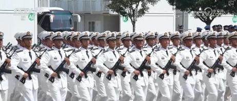 海军参阅队员甘贤鸿表示,因为是第一次比较大型合练,不想错过,结果那天站到一半实在坚持不下来,他心里很不服,每次训练就会更卖力,自己在最后边一个人踢,就更卖力一点,就想让教练员看到他的努力、看到他的进步,再重新回排面,证明他有这个实力。