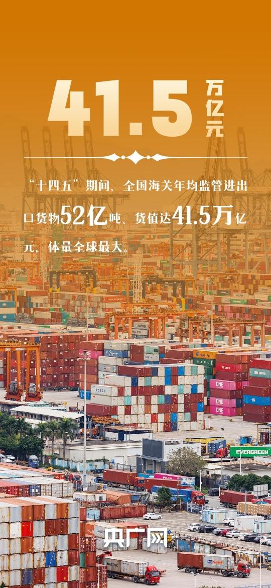 今天上午,国务院新闻办公室举行“高质量完成‘十四五’规划”系列主题新闻发布会,海关总署有关负责人介绍“十四五”时期海关守护国门安全、促进高质量发展成就并答记者问。据介绍,我国新增和扩大开放口岸40个,我国已成为全球157个国家和地区前三大贸易伙伴……戳图!一组数据看海关成绩单!