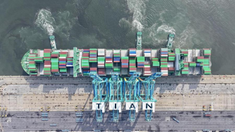 近日,一艘装载着近3000个集装箱的货轮停靠天津港第二集装箱码头。汽车零配件、烘干机、洗碗机、商用空调、洗衣机……其中一批价值378万美元的货物将搭乘“沿着班列看上合”融媒体报道全程聚焦的一列中欧(中亚)班列,途经国内多个站点,最终抵达哈萨克斯坦和乌兹别克斯坦。