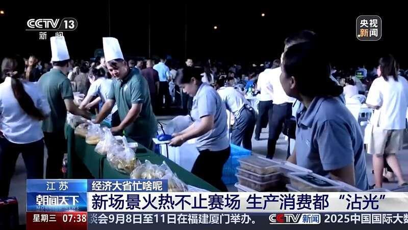 根据国家统计局江苏调查总队的专题调研,这个夏天,在“苏超”足球赛的带动下,“看赛事、品美食、逛夜市”,形成了一条龙式消费新场景。95.9%的观众在现场观赛前后,进行了门票外的延伸消费。7月份,江苏超过10座城市的夜宵订单量增长都超过了70%。苏超的火热甚至从街头巷尾传导到了生产草坪的工厂。