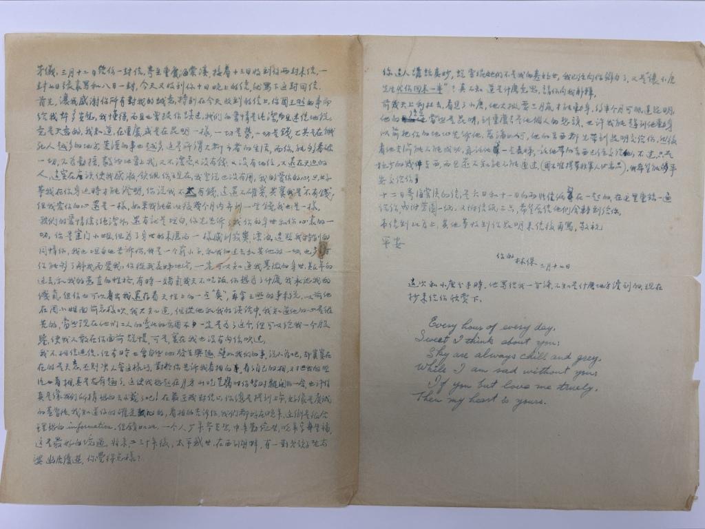 今天翻阅这些书信,字里行间饱含深情。其中动人的,不止于儿女情长,还有当时年轻人的爱国情怀、文化品格、精神信念,以及其中承载的珍贵抗战历史细节。宏大的政治叙事之外,两个普通青年的生活轨迹与家国命运紧密相连,跃然纸上。