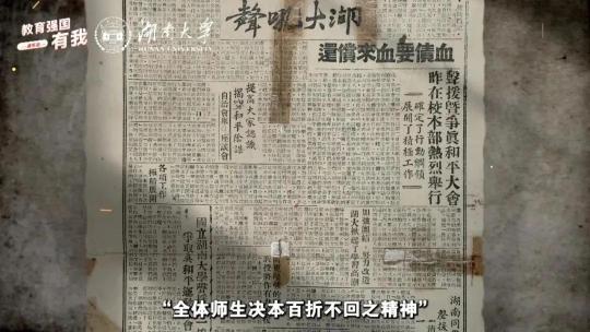 习近平总书记强调,广大青少年生逢其时,要赓续红色血脉,树立强国有我的远大志向,做堂堂正正、光荣自豪的中国人,勇担民族复兴的时代大任。2025年是中国人民抗日战争暨世界反法西斯战争胜利80周年,教育部政务新媒体推出“教育强国,有我!”网络主题宣传活动之 “青年说·传承篇”系列,挖掘高校里的红色记忆,展现青年师生的时代担当。今天 ,跟教育小微通过1个微视频和1个故事,共同回顾 湖南大学师生英勇抗战的烽火岁月——
