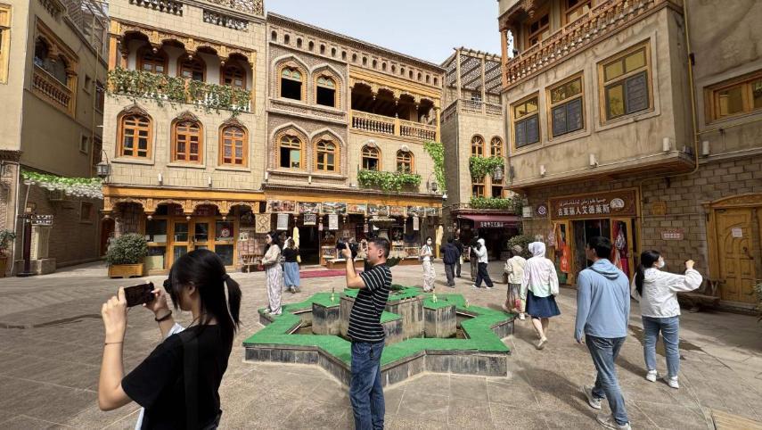 午后时光,阳光洒落在新疆和田市团城的巷道里。极具民族特色的“阿依旺”式建筑鳞次栉比。街道两旁,游客三五成群,或在特色餐馆品尝美食,或在非遗作坊体验手工艺,或在旅拍店前留下身影。人声鼎沸的热闹景象,见证着这片土地的蝶变与新生。
