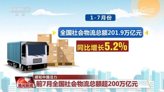 前7月全国社会物流总额超200万亿元