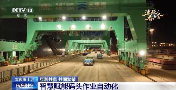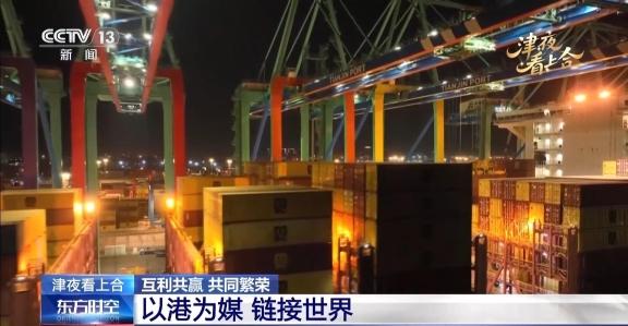 总台央视记者宋菀在天津港北疆港区C段集装箱码头,看到夜晚的天津港灯火通明,不远处有两艘集装箱货轮停泊在岸边,它们装载着机械设备和电子产品等,即将启程前往巴基斯坦卡拉奇港。本周已有11艘上合组织国家的集装箱航线船舶靠泊了天津港,这里已经成为中国与上合组织国家对外开放的重要枢纽之一。