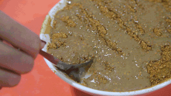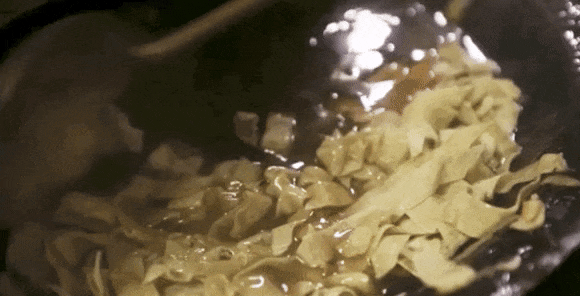 嘎巴菜是锅巴菜的口语称呼,用刀切成柳叶状的锅巴菜,浇上十几种调料制成的卤汁,再撒上辣椒油、芝麻酱、腐乳汁、香菜……趁热吃,别有一番风味。