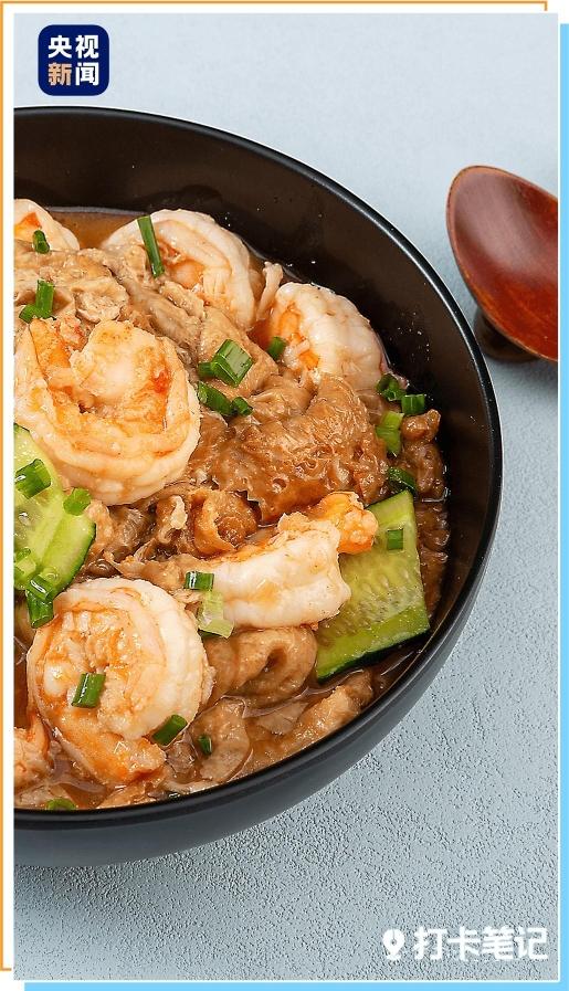 △虾仁笃面筋。“笃”就是天津人常说的“咕嘟”,指小火慢炖,煨炖后的面筋软绵入味。