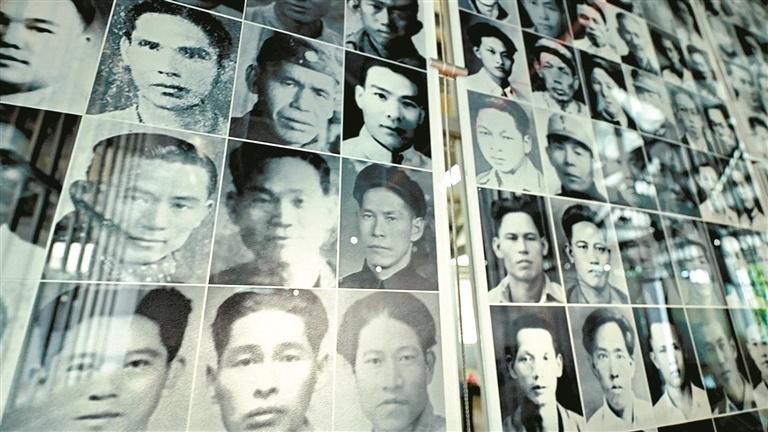 马来西亚南侨机工纪念馆中的机工照片墙。