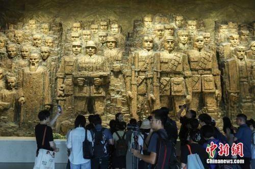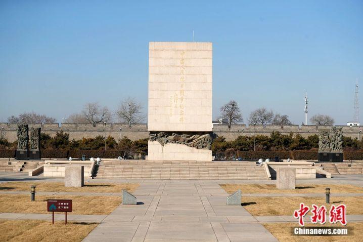 中国人民抗日战争纪念馆前的醒狮雕塑。中新社记者 富田 摄