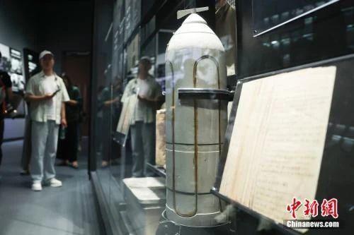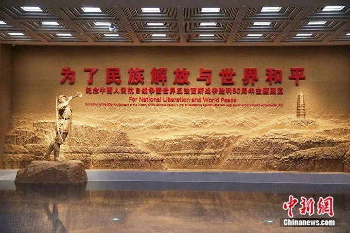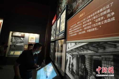 《为了民族解放与世界和平》主题展览在中国人民抗日战争纪念馆面向社会公众开放。在“弘扬伟大抗战精神 深切缅怀抗战英烈”专区,观众自发献花,缅怀先辈。中新社记者 杜燕 摄