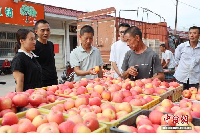 来自江西的客商沈竹清,在洛川收购苹果已有三十多年,是当地果农的“老熟人”。他告诉记者,洛川苹果凭借出众的口感和过硬的品质,在全国市场上一直很受欢迎,不愁销路。为了抢占今年的水果市场,他提前半个月就开始在洛川设点收购,开足马力赶进度。