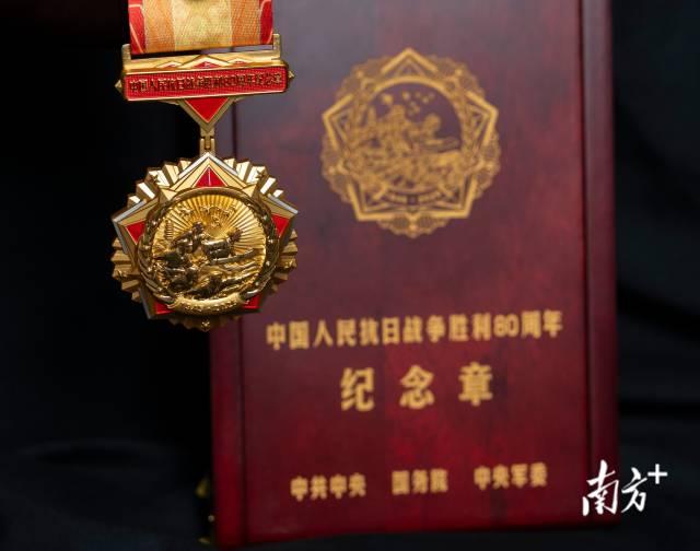 8月19日,在抗战老战士家里,摆放着由中共中央、国务院、中央军委授予的“中国人民抗日战争胜利80周年”纪念章在光影下熠熠生辉。
