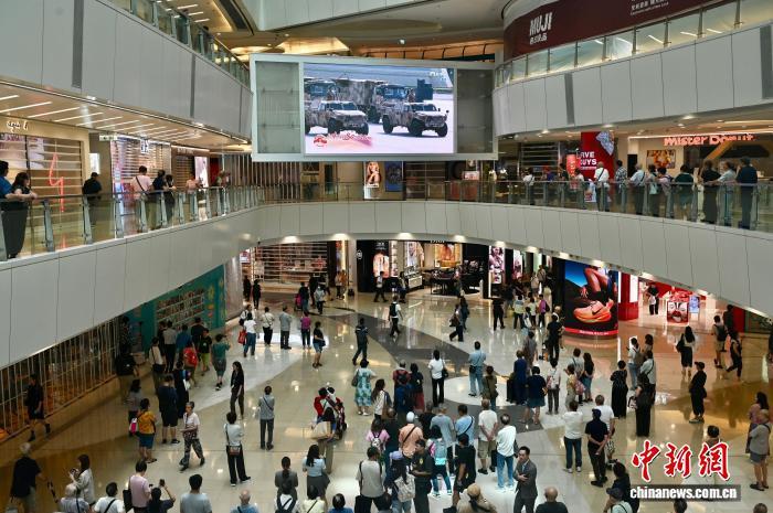 在香港的不少商场里,许多市民也被大屏幕上的直播所吸引,加入观看行列。香港市民陈染说,她特意带孩子去大屏前,一同感受这承载着历史重量的时刻。