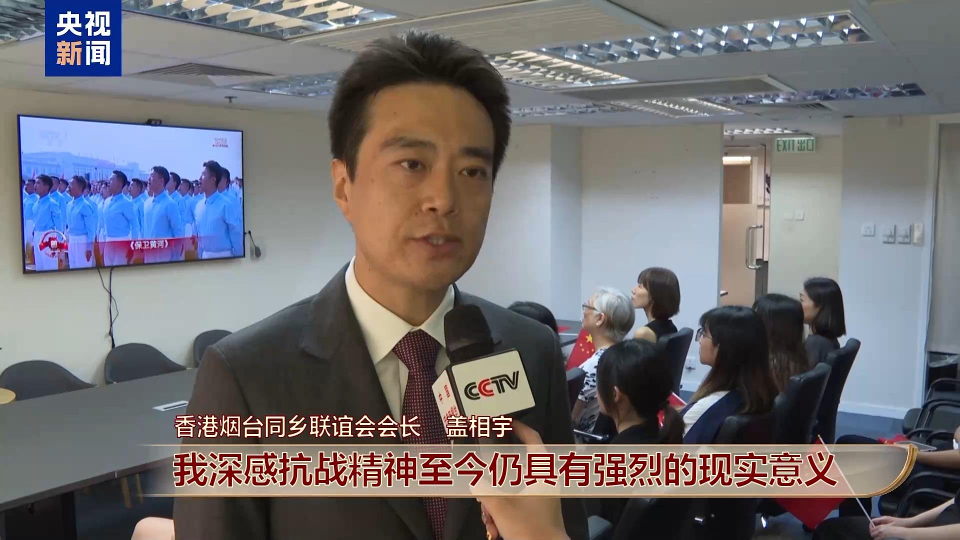 香港烟台同乡联谊会会长 盖相宇:作为香港人,我深感抗战精神至今仍具有强烈的现实意义,激励我们砥砺前行。从伟大胜利走向伟大复兴,英雄的中国人民必将在伟大的斗争中书写新的英雄史诗。