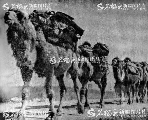 国际驿运线上运送抗战物资的驼队。新疆图片库提供
