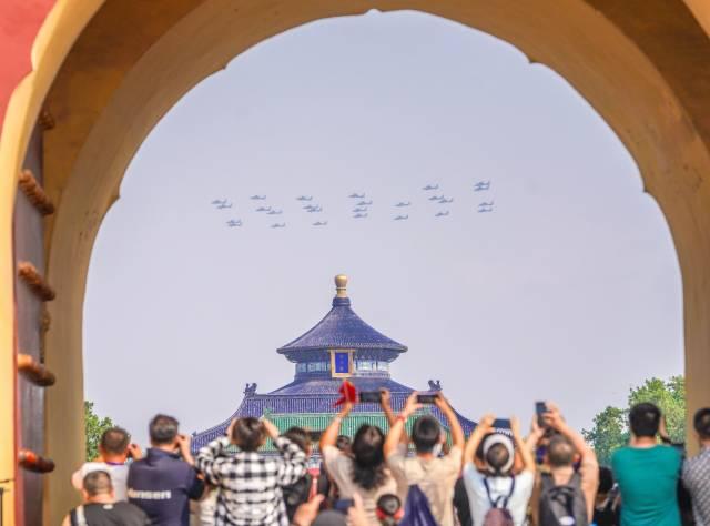 走过峥嵘岁月,历经风雨洗礼,复兴伟业气势如虹。当阅兵战机与祈年殿同框,壮美的画面赋予这场国之大典以厚重与柔情,人们内心的民族自豪感也更加激扬澎湃!