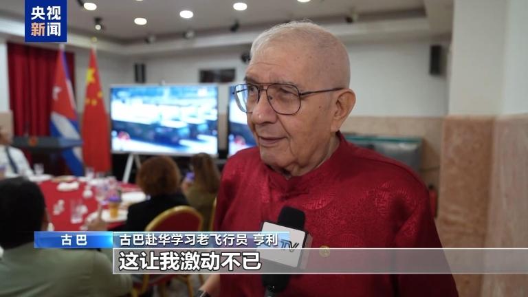 古巴赴华学习老飞行员 亨利:我非常欣赏中国人礼待老兵。习近平主席亲自向他们致敬,这让我激动不已。