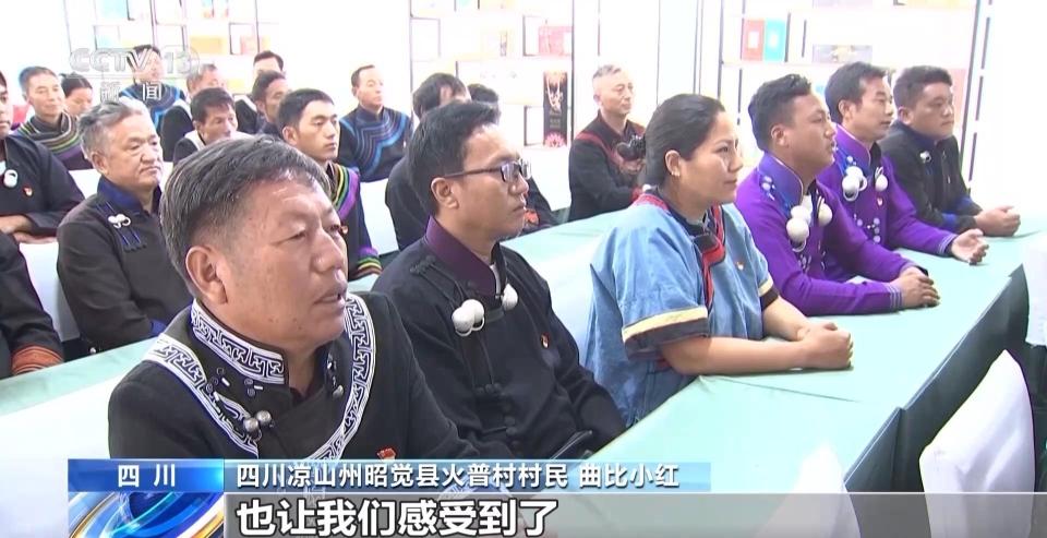 在四川凉山昭觉县火普村,收看大会直播的村民们脸上洋溢着自豪的神情。