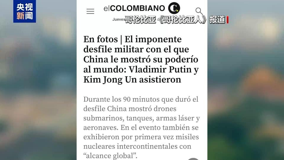 哥伦比亚西班牙语综合性日报《哥伦比亚人》报道说,中国展示了水下无人装备、新型坦克、激光武器和各类战机等。