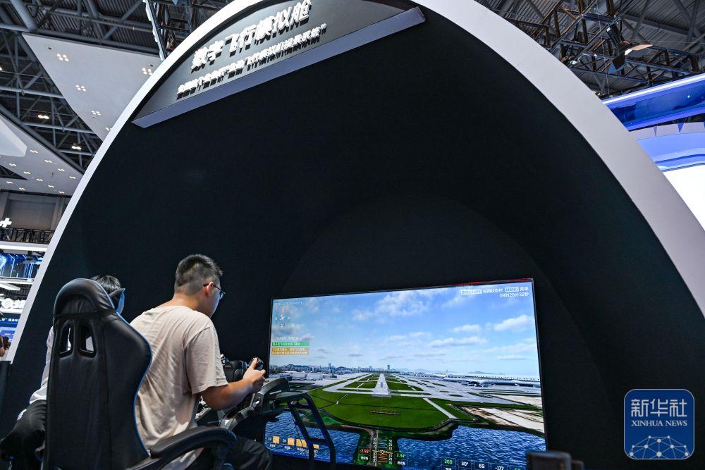 ↑ 9月5日,观众在2025世界智能产业博览会上体验“数字飞行模拟舱”。