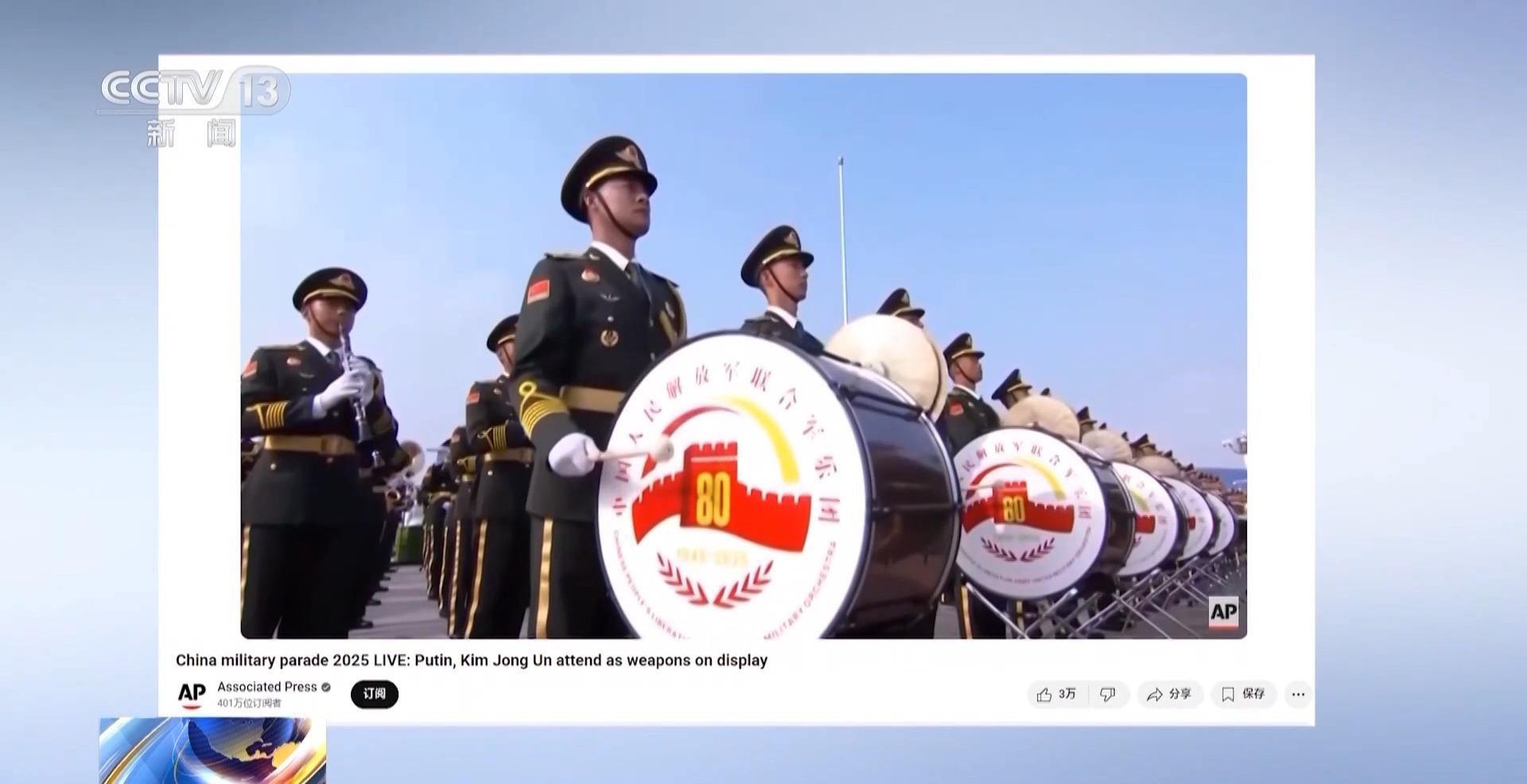 美国有线电视新闻网(CNN)通过现场记者和总台的直播信号几乎全程关注了抗战胜利80周年纪念大会。美国广播公司(ABC)、美国全国广播公司(NBC)、美联社等多家媒体和通讯社也对此进行了转播和报道。