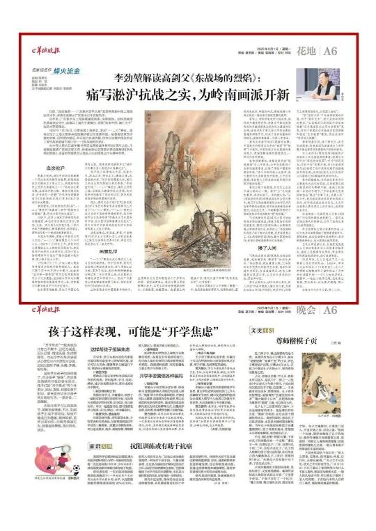 今年以来,羊城晚报文化副刊部团队因应纪念抗战胜利80周年的重大主题,通过重温文艺经典、不断梳理抗战史料和走访党史专家,在一件件文艺经典作品中,看到了若干由广东艺术家引领的文艺群体——以高剑父为代表的岭南画派,以黄新波等为代表的新兴木刻运动主力军,以沙飞为先驱的红色摄影群体,以马师曾为领衔的爱国粤剧名伶等。由此,我们逐步形成该系列策划思路,即从一件经典之作和相关名家的解读入手,走近一个文艺群体,进而挖掘经典背后的岭南文化脉络、红色文化基因,致敬伟大的抗战精神。