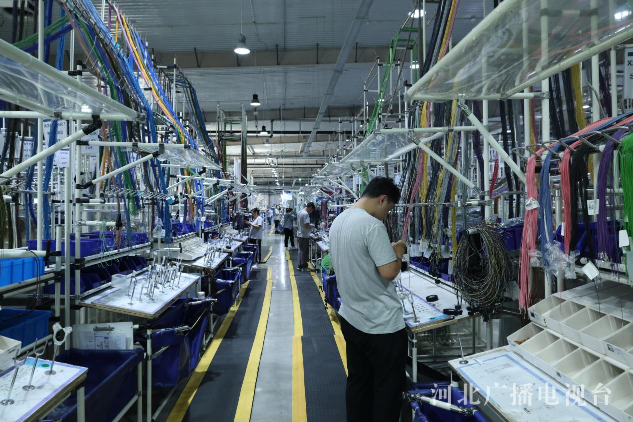 离开“数字云端”,记者团走进廊坊莱尼线束系统有限公司的生产车间,瞬间被眼前的场景震撼:数百台自动化设备高速运转,细如发丝的铜丝在机械臂间精准缠绕,最终汇集成车用线束——这些看似普通的“线疙瘩”,却是新能源汽车的“神经网络”。