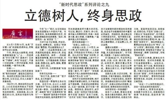 9月1日以来,广州日报连续推出十篇“新时代思政”系列评论。