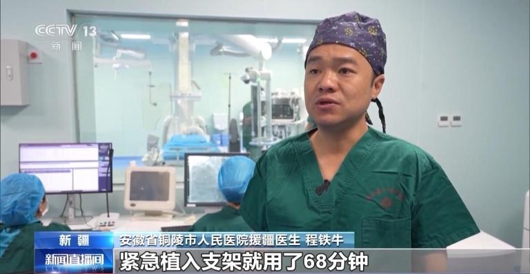安徽省铜陵市人民医院援疆医生程铁牛:紧急植入支架就用了68分钟。心内科急诊有个“黄金90分钟”,现在我们终于把这条生死线前移了一千里!