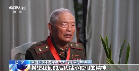 中国人民志愿军老战士何临弟:因为我那时候发高烧,文工团的同志就背着我到演出那里去,演完后,他又把我背回来了。第二次我们去慰问演出,结果他们文工团的告诉我,说那个同志牺牲了。起码背了有一里多地,所以想着就是,心里忘不了,一直忘不了这件事情。我要是能回国的话,为他父母尽孝,为他父母养老送终,这就是我的想法,但是后来我不知道他的姓名,也不知道他的家在哪里住,这个就一直在我心里惦记着。今天战友们回到祖国母亲的怀抱,是他们用鲜血和生命保卫了我们国家,这是我们永远不能忘记的事情,希望我们的后代继承他们的精神。