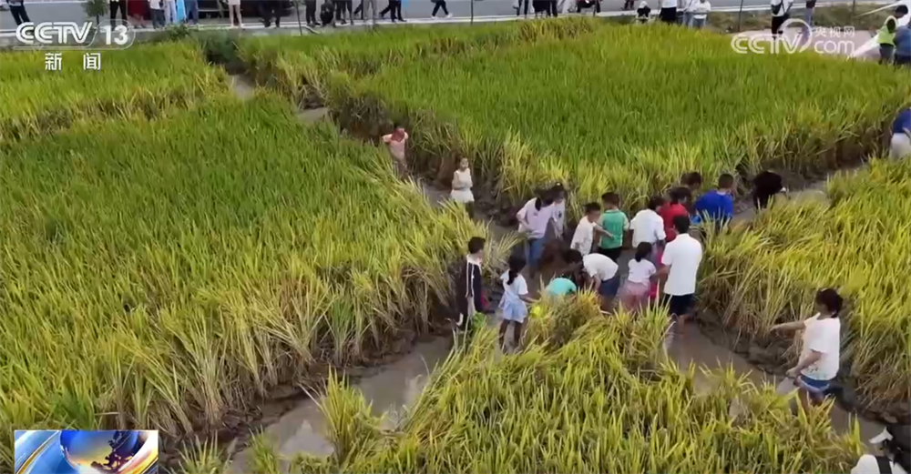 摸鱼大赛气氛热烈,裁判一声令下,孩子们迅速冲入稻田,尽情体验捕鱼的乐趣。