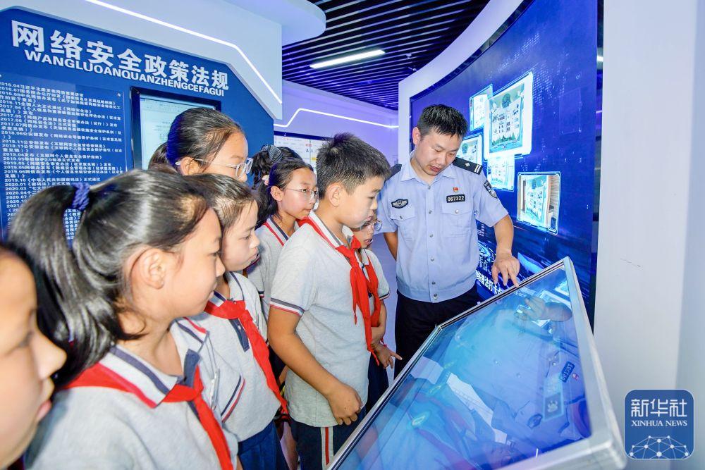 9月15日,民警在天津市滨海新区塘沽实验小学为学生讲解网络安全知识。新华社发(杜鹏辉摄)